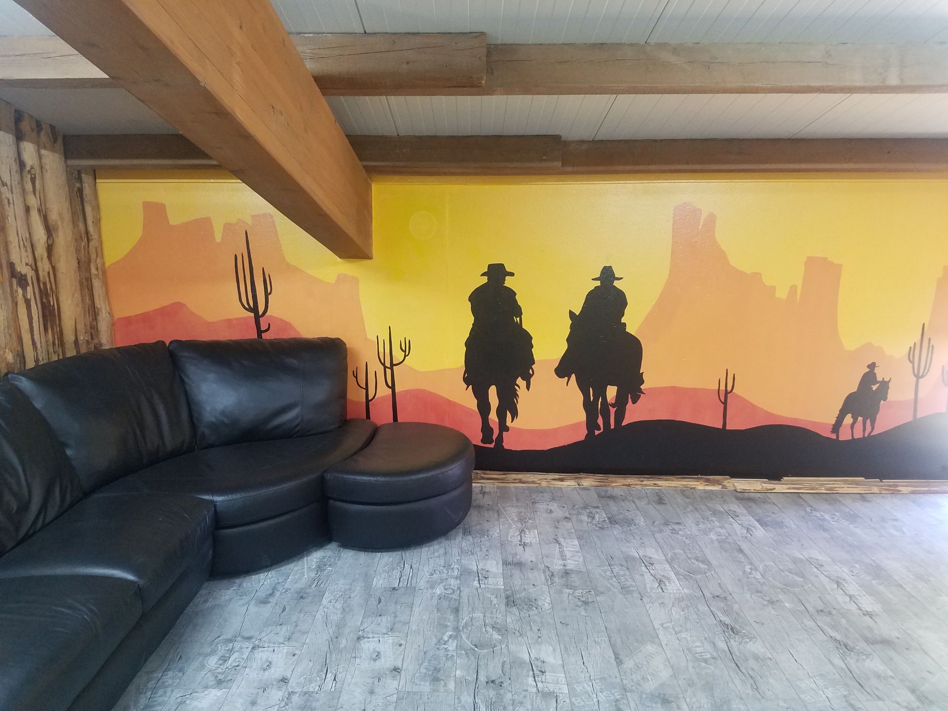 Ausserdem haben wir auf dem Heuboden für die Camps einen Rodeoraum mit einem stählernen Mustang umgebaut.