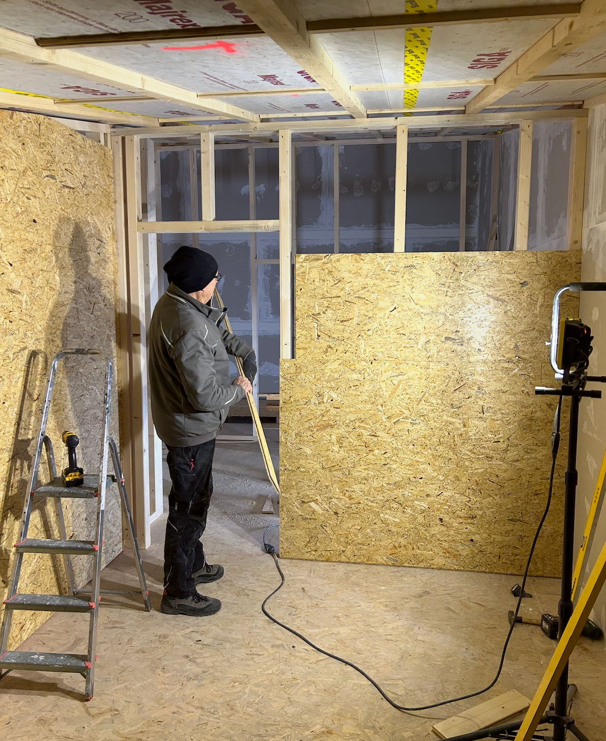 - Bau der Wände aus Holzpanelen